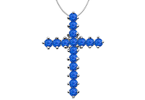 Fine Jewelry Vault UBPDR196W14S Religious Cross Pendant with Natural Blue Sapphire in 14K White Gold 2 Carat Total Gem W