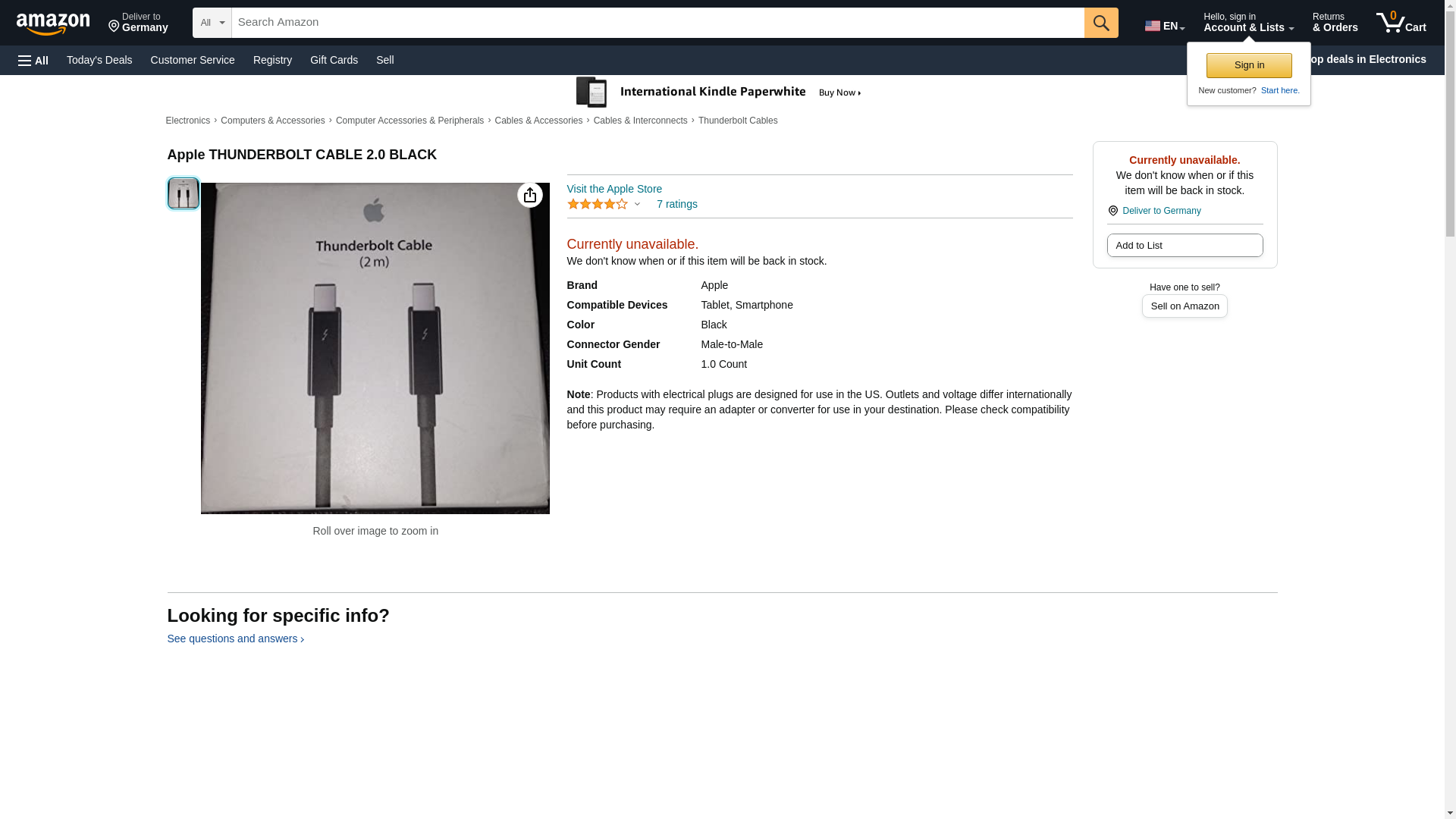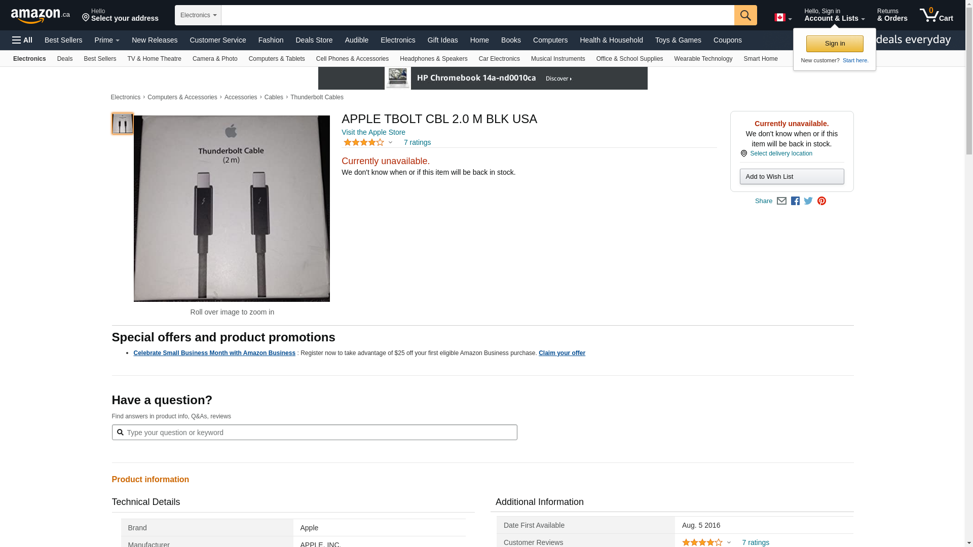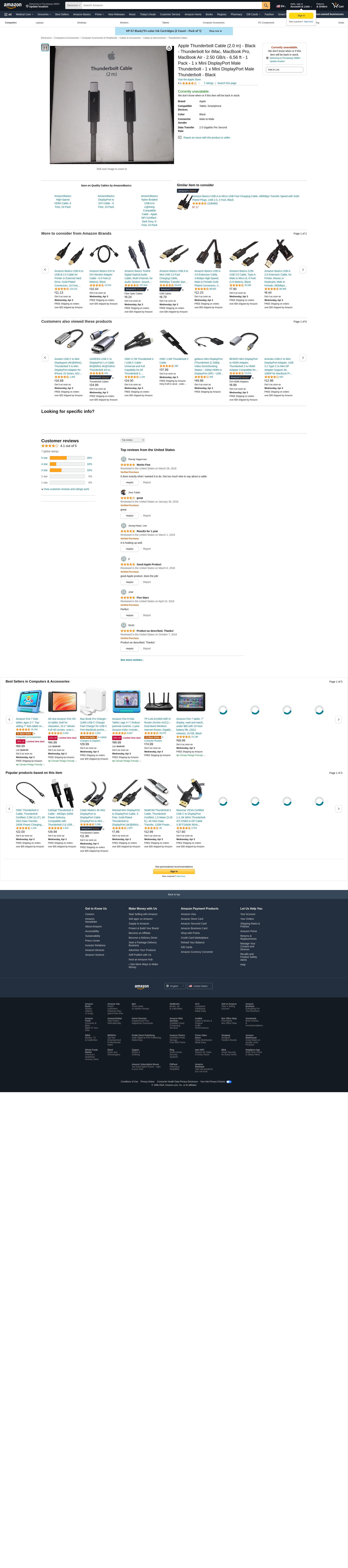 APPLE, FIRE SALE, APPLE THUNDERBOLT CABLE (2.0 M, BLK) - BRAND NEW, ONLY WHILE SUPPLIES LAST