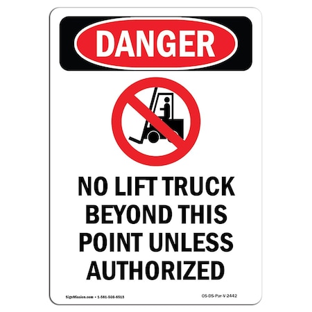 OSHA Danger Sign, No Lift Truck Beyond, 18in X 12in Aluminum