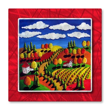 MYW2801 <br /> <b>Features</b> <br /> <ul> <li>High quality welded and bolted construction</li> <li>Hangs in 15 minutes</li> <li>Painted steel</li> <li>Corrosion resistant finish</li> <li>Layers: 2</li> <li>Panels: 1 Back / 1 front</li> <li>Subject: Landscape & Nature</li> <li>Size: Medium 25"-32"</li> <li>Style (Old): Contemporary</li> <li>Color: Blue/Red/Green</li> <li>Country of Manufacture: United States</li> <li>Artist: Renie Britenbucher</li> <li>Region: North America</li> <li>Primary Art Material: Metal</li> </ul> <br /> <b>Dimensions</b> <br /> <ul> <li>Overall Height - Top to Bottom: 29.5"</li> <li>Overall Width - Side to Side: 29.5"</li> <li>Overall Depth - Front to Back: 2"</li> <li>Overall Product Weight: 21 lbs</li> </ul>