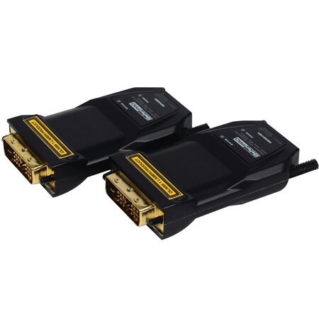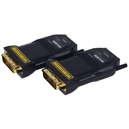 The GefenPRO DVI FM1500 Optical DVI Extender with Recordable EDID extends a DVI source up to 3280 feet (one kilometer) using single-mode fiber optic cable. Virtual EDID programming provides fast integration and compatibility with the input video source and the display. Resolutions up to 1920 x 1200 (WUXGA) at 60 Hz are supported.