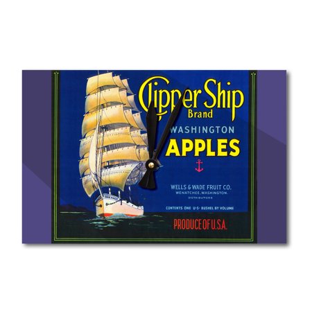 Clipper Ship Apple Label (blue) (Acrylic Wall Clock)