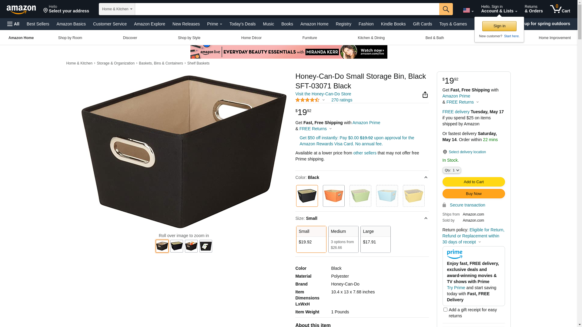 HONEY-CAN-DO INTERNATIONAL SFT-03071 BIN STORAGE SM BLACK