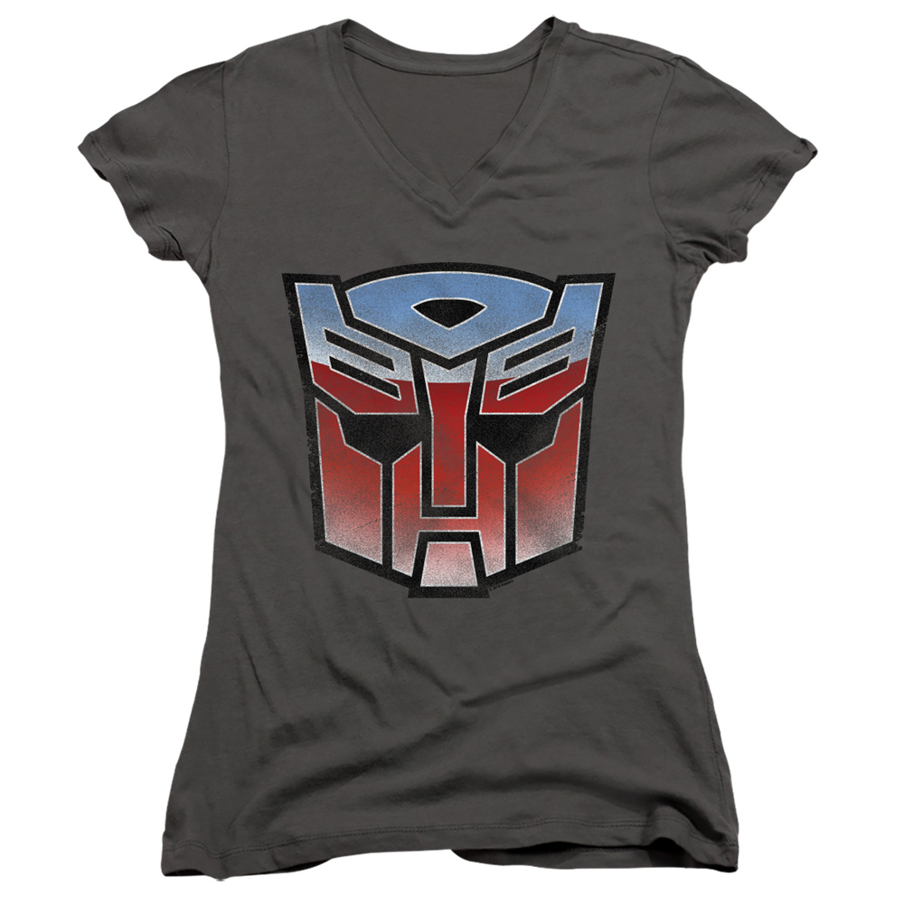 Trevco HBRO127-JV-5 Transformers & Vintage Autobot Logo-Juniors V-Neck T-Shirt, Charcoal - 2X