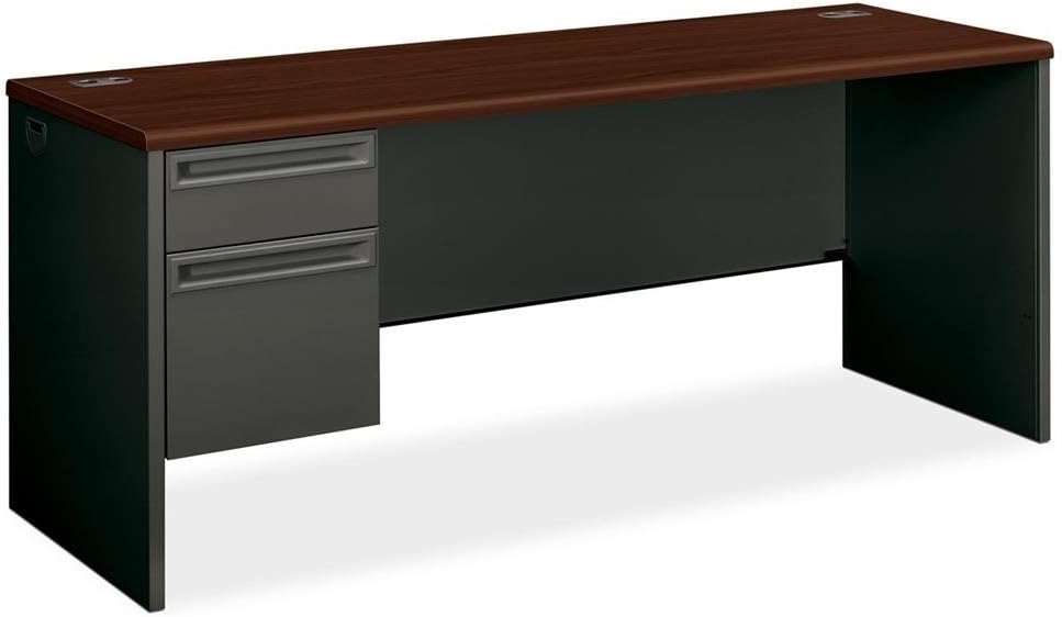 HON 38000 Series Left Hand Single Pedestal Credenza, 72 by 24 by 29-1/2-Inch, Mahogany/Charcoal