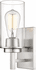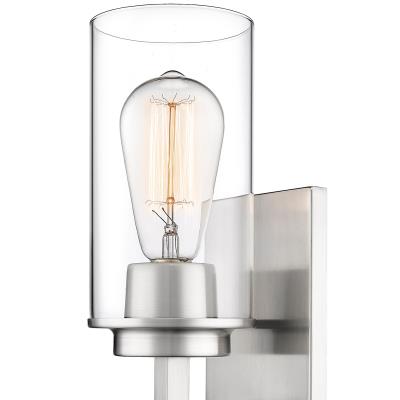 Wherever there is a need for light, there is the opportunity to make an excellent design choice. Sconce lighting gives you that chance to make creative choices to illuminate stairs, hallways, or any space in the home that needs a little light. Features Serves as an excellent source of illumination and an eye-catching decorative fixture Constructed from metal and glass Comes with clear glass shade (1) 60 watt maximum medium (E26) bulb required Dimmable with compatible dimming bulbs Mountable in different orientations UL rated for damp locations Covered under a 1 year limited manufacturer Dimensions Height: 11" Width: 4" Extension: 1/2" Product Weight: 2.75 lbs Backplate Height: 7" Backplate Width: 4-1/2" Electrical Specifications Number of Bulbs: 1 Max Watts Per Bulb: 60 watts Bulb Base: Medium (E26) Bulb Shape: A19 Bulb Included: No