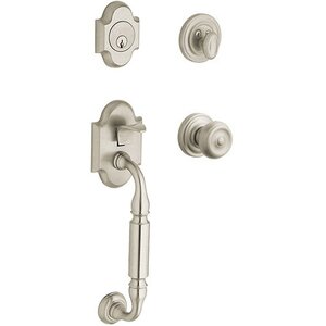 Canterbury Collection - Sectional Single Cylinder Handleset with Colonial Knob in Satin Nickel by Baldwin Hardware - 85305150ENTR | MyKnobs