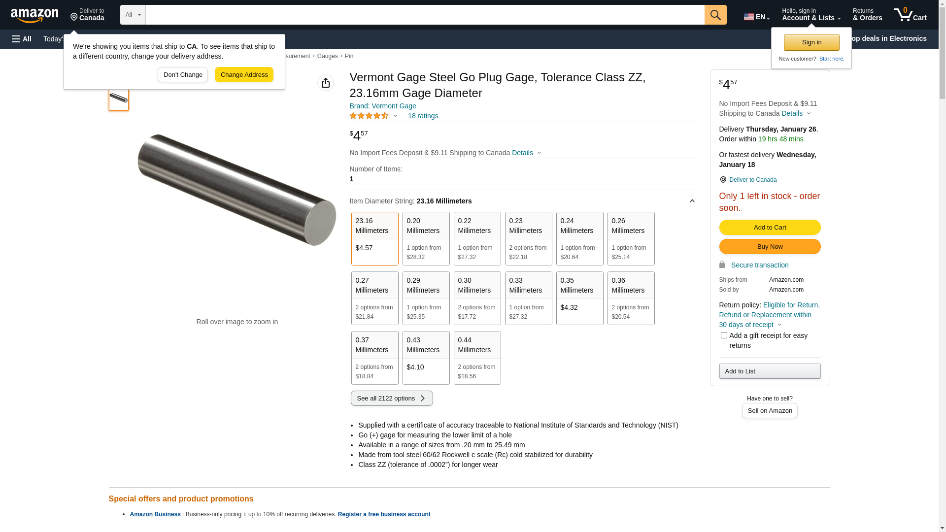 Vermont Gage Steel Go Plug Gage, Tolerance Class ZZ, 23.16mm Gage Diameter