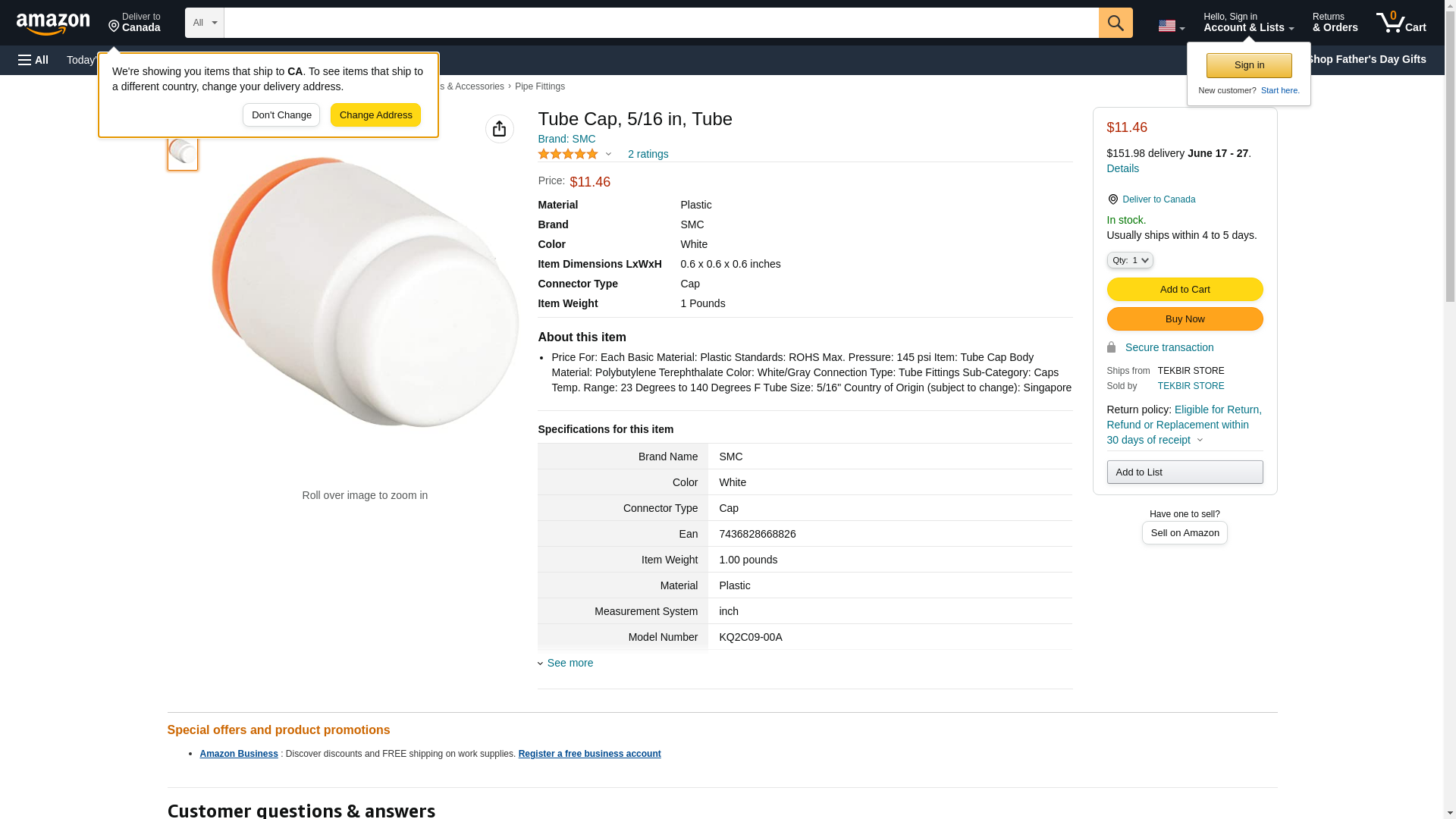 | Feature | Price For: Each Basic Material: Plastic Standards: ROHS Max. Pressure: 145 psi Item: Tube Cap Body Material: Polybutylene Terephthalate Color: White/Gray Connection Type: Tube Fittings Sub-Category: Caps Temp. Range: 23 Degrees to 140 Degrees F Tube Size: 5/16" Country of Origin (subject to change): Singapore |