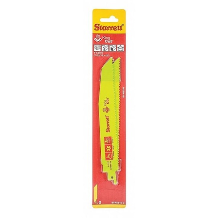 Starrett BTR8610-2 Bi-Metal Tapered King Cut Fire, Rescue and Demolition Reciprocating Blade, 0.063" Thick, 6-10 TPI, 8" Length x 1" Width (Pack of 2)