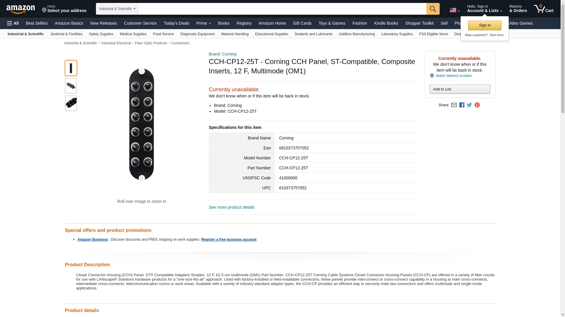 Corning Cable CCH-CP12-25T 12-Fiber Fiber Optic Loaded MM Adapter Panel, CCH