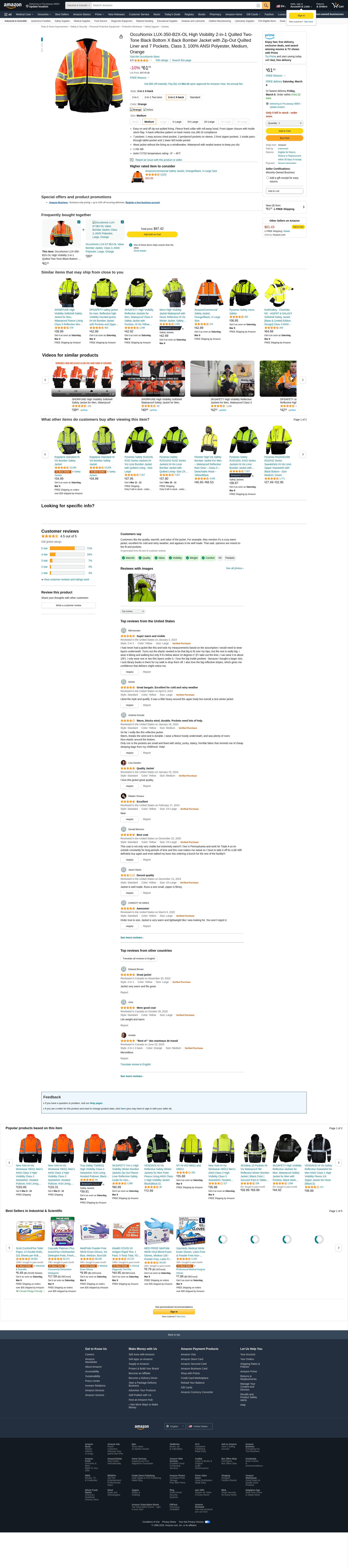 | Feature | Occunomix LUX-350-B2X Black Bottom 2-in-1 X Back Bomber Jacket 4X Orange |