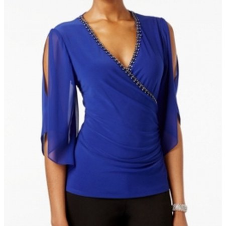 <li><b>Color:</b> Blues</li> <li><b>Size Type:</b> Regular</li> <li><b>Size (Women's):</b> S</li> <li><b>Lined:</b> Yes</li> <li><b>Sleeve Style:</b> Kimono Sleeve</li> <li><b>Style:</b> Blouse</li> <li><b>Occasion:</b> Evening, Occasion</li> <li><b>Material:</b> Polyester</li>