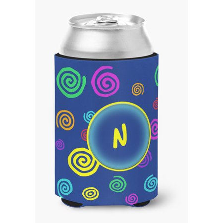 Caroline's Treasures CJ1011-NCC Letter N Initial Monogram - Blue Swirls Can or Bottle Hugger Cooler Washable Drink Sleeve Collapsible Beverage Insulated Holder, Can Hugger, Multicolor