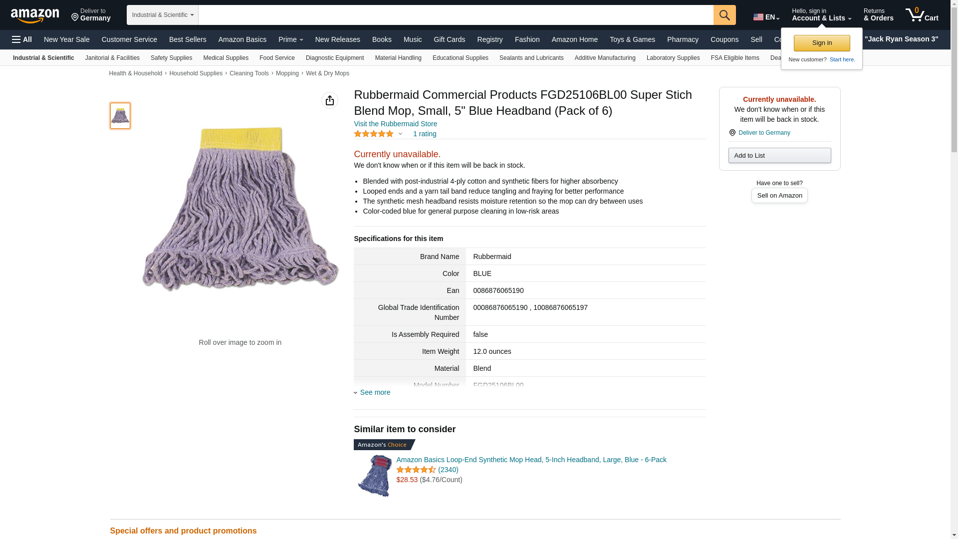 Rubbermaid Commercial Products-FGD25106BL00 Super Stitch Blend Mop, Small, 5-Inch Headband, Blue