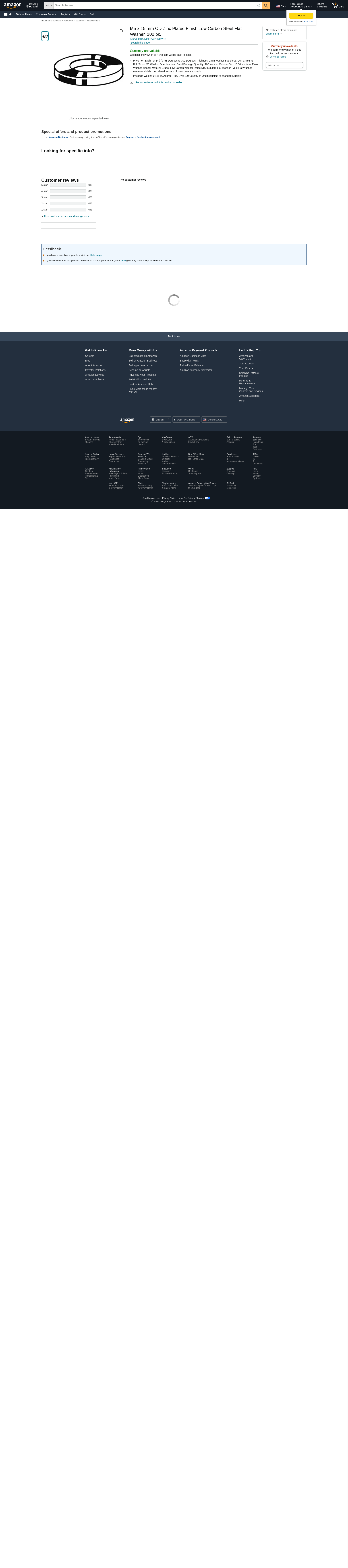 M5 x 15 mm OD Zinc Plated Finish Low Carbon Steel Flat Washer, 100 pk.