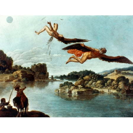 Stretched Canvas Art - Carlo Saraceni: Icarus. /N'The Fall Of Icarus.' Oil On Copper By Carlo Saraceni (C1580-1620). - Medium 18 x 24 inch Wall Art Decor Size.