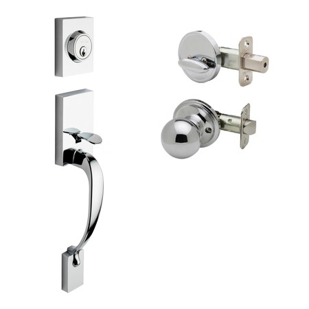 Copper Creek FZ2610XBK-PS Craftsman Front Entrance Handleset in Polished Stainless with Ball Knob Interior