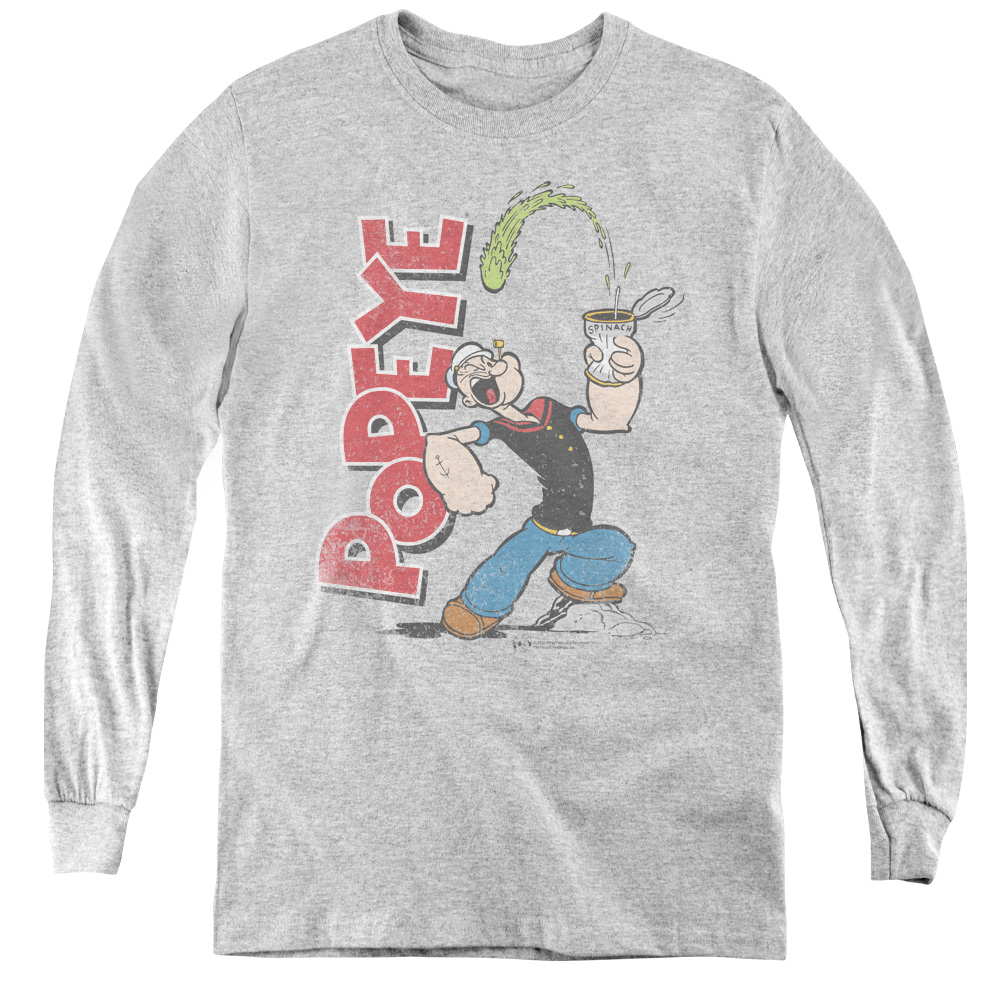 Trevco PYE688-YL-1 Popeye & Spinach Power Youth Long Sleeve Tee Shirt, Athletic Heather - Small