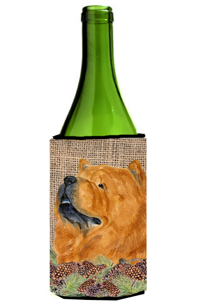 Carolines Treasures SS4091LITERK Chow Chow on Faux Burlap with Pine Cones Wine bottle sleeve Hugger 24 oz.