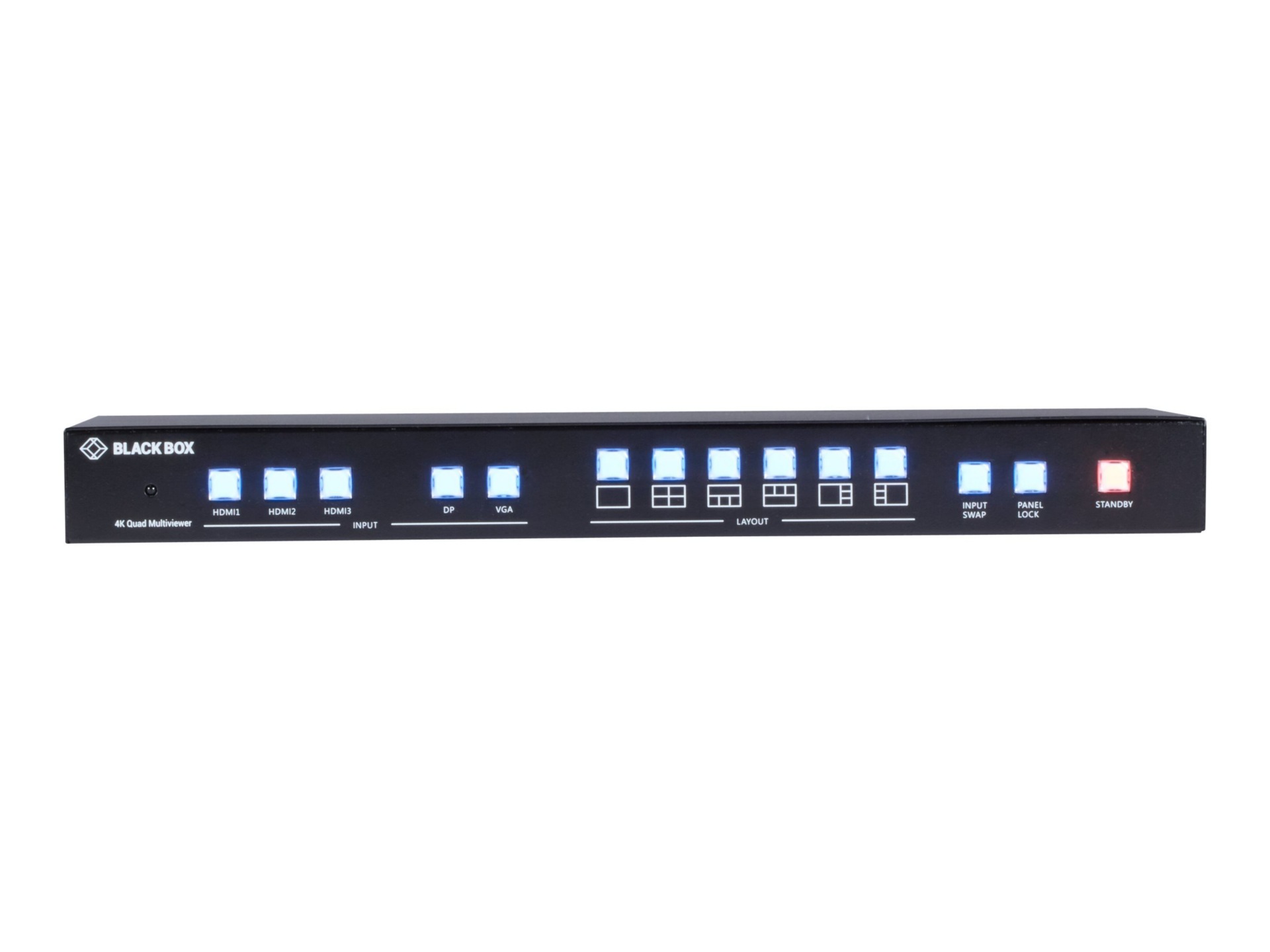 Black Box 5x1 Quad Multiviewer, 4K60, HDMI, DisplayPort, VGA