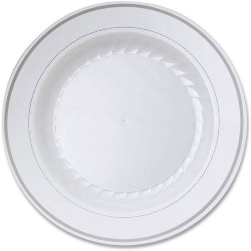 Comet Plates, Round, Heavyweight Plastic, 10-1/4" Dia, 120/Ct, WeSingle-use dinnerware features a classic, elegant design to enhance the dining experience at any upscale event. Heavyweight plastic construction offers a strong, durable solution for a range of versatile applications. Disposable design alleviates the inconveniences of permanent ware for hassle-free use. Dinnerware is perfect for company gatherings, special events, parties, picnics and more. WNA, Inc. Comet Plates, Round, Heavyweight Plastic, 10-1/4" Dia, 120/Ct, We