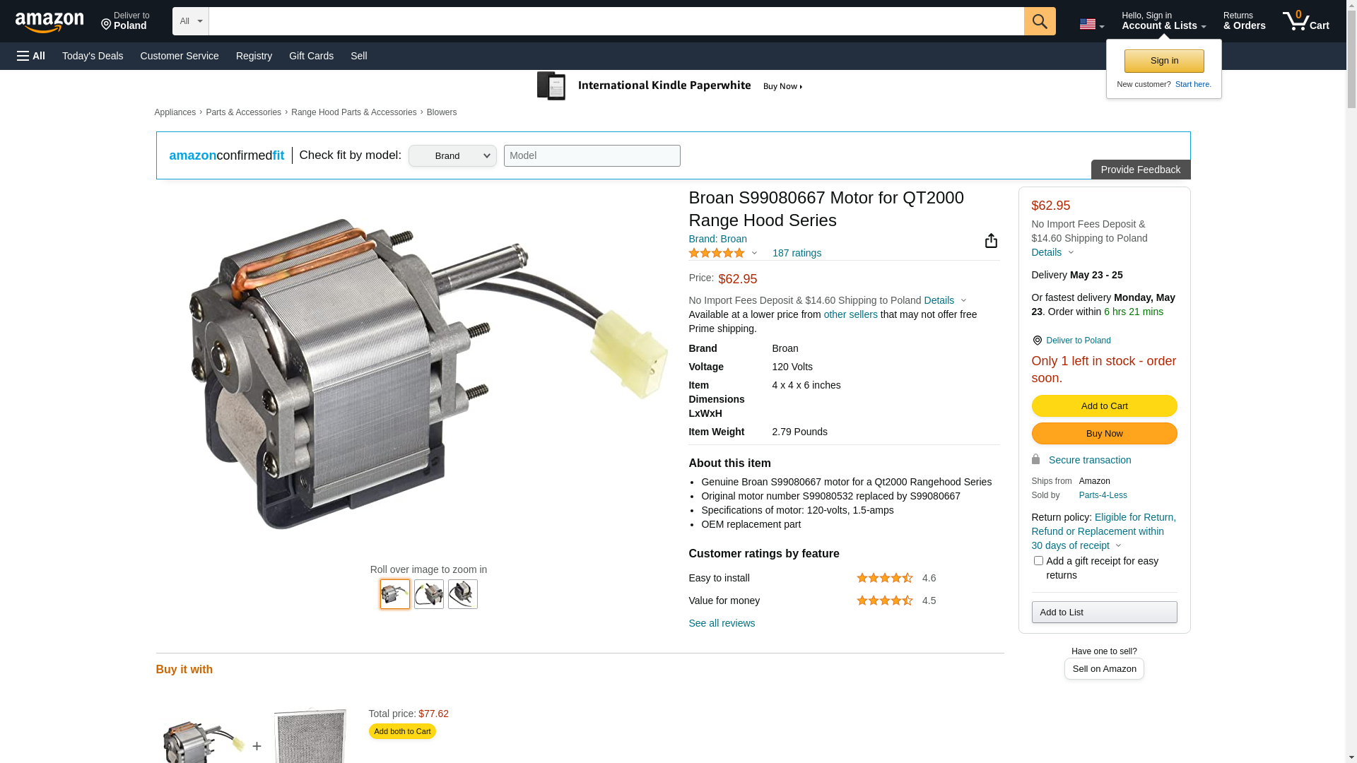 ![]() midwestapplianceparts.com | S99080667-BRO-P | 1 | 1 | 1 @ $114.53 | |
