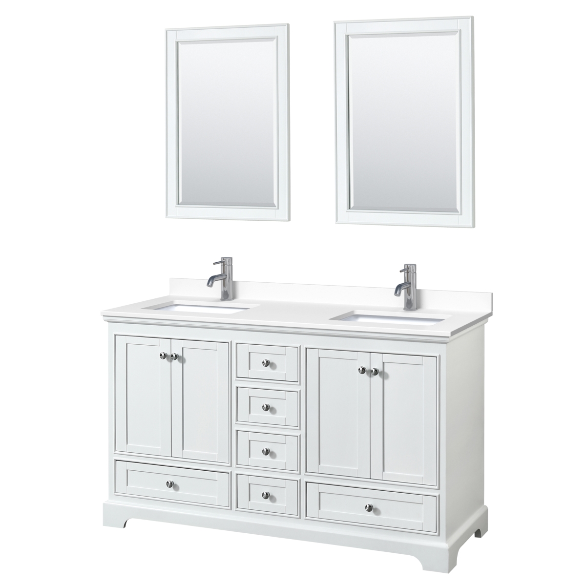 WYNDHAM COLLECTION WCS202060DWHWCUNSM24 DEBORAH 60 INCH FREESTANDING DOUBLE SINK BATHROOM VANITY WITH COUNTER TOP,...