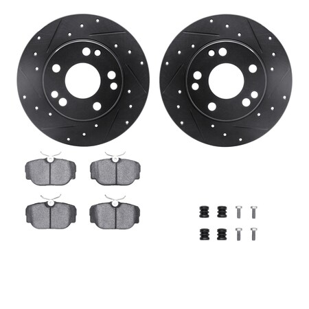 8612-63026, Rotors-Drilled, Slotted-Black w/ 5000 Euro Ceramic Brake Pads incl. Hardware, Zinc Coat