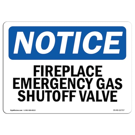 OSHA Notice Sign, Fireplace Emergency Gas Shutoff Valve, 10in X 7in Decal