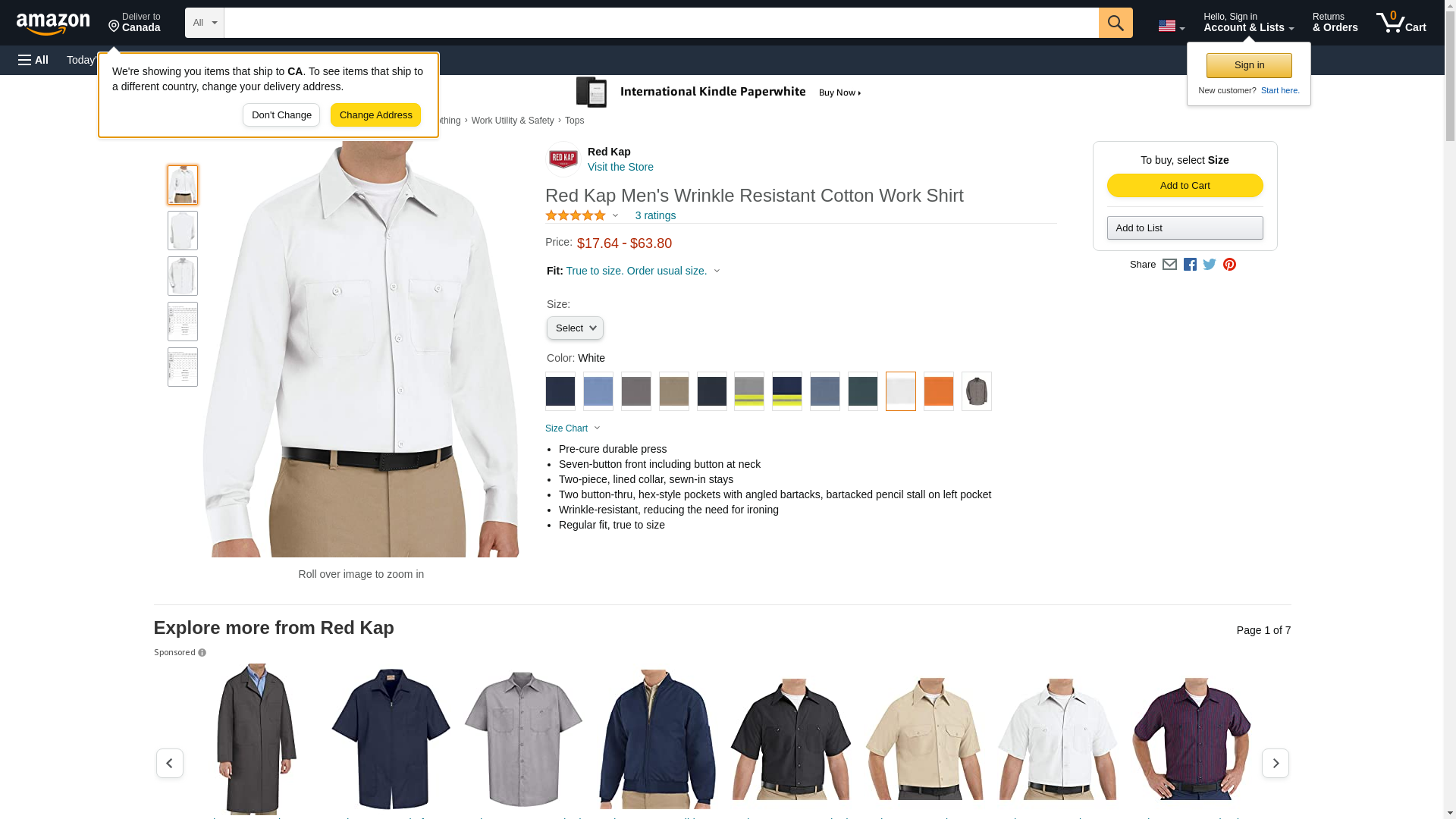 Red Kap Men's Wrinkle-Resistant Cotton Work Shirt, White, Long Large
