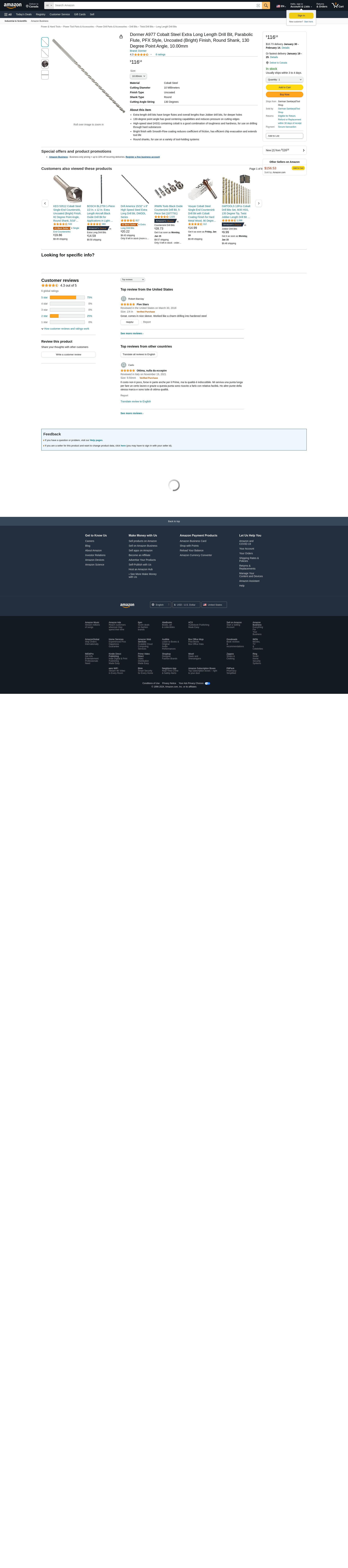 Dormer A977 Cobalt Steel Extra Long Length Drill Bit, Parabolic Flute, PFX Style, Uncoated (Bright) Finish, Round Shank, 130 Degree Point Angle, 10.00mm