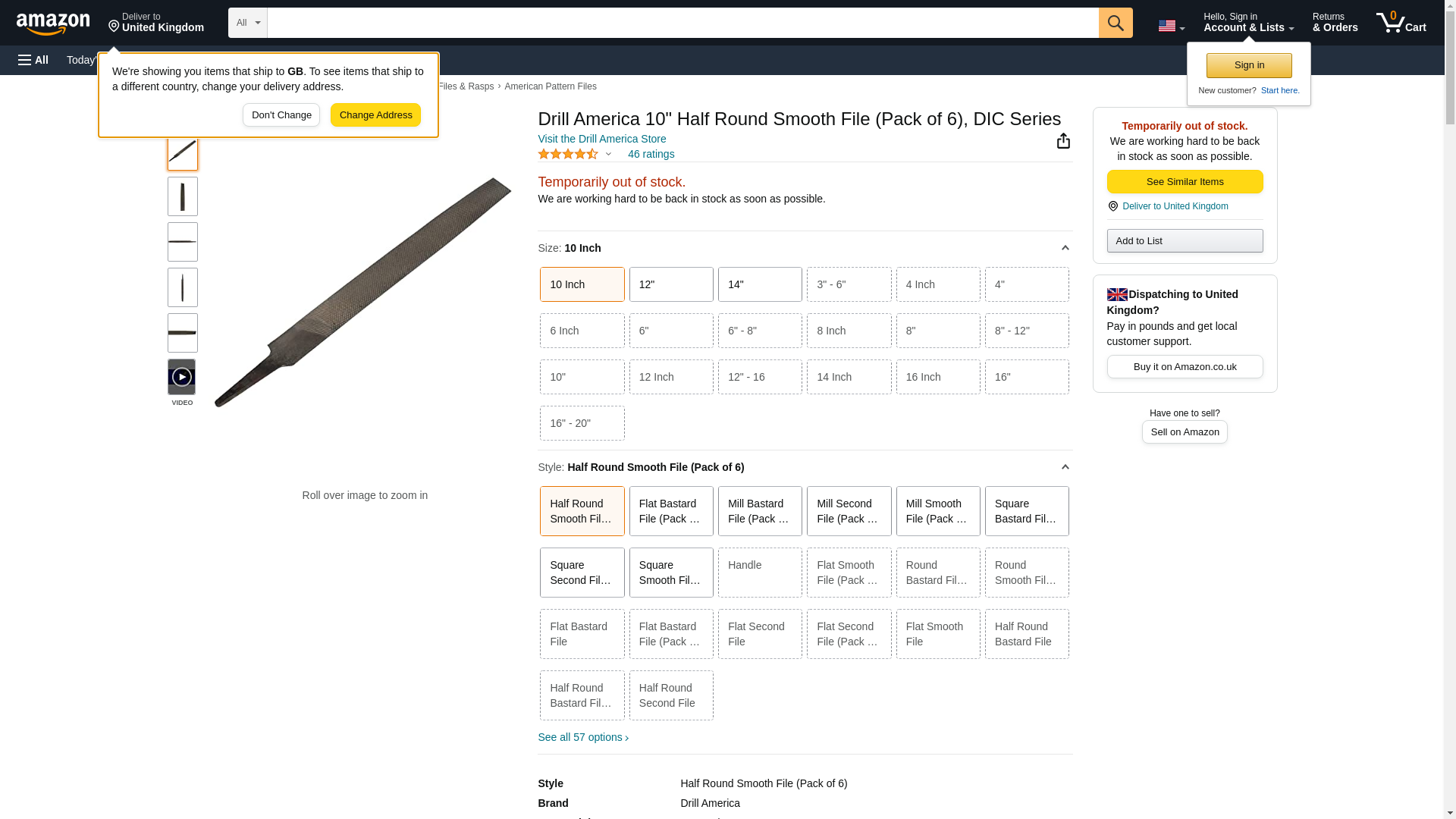 Drill America 10" Half Round Smooth File (Pack of 6), DIC Series