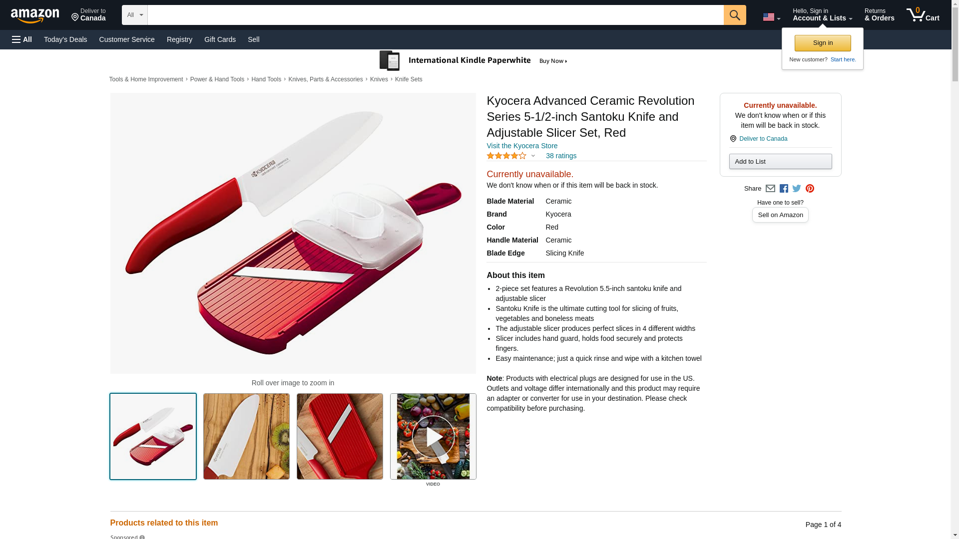 Kyocera Advanced Ceramic Revolution Series 5-1/2-inch Santoku Knife and Adjustable Slicer Set, Red