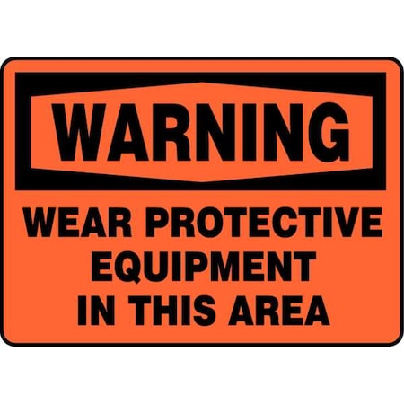 Accuform MPPE313VS Sign, Legend "Warning WEAR Protective Equipment in This Area", 10" Length x 14" Width x 0.004" Thickness, Adhesive Vinyl, 10" x 14", Black on Orange