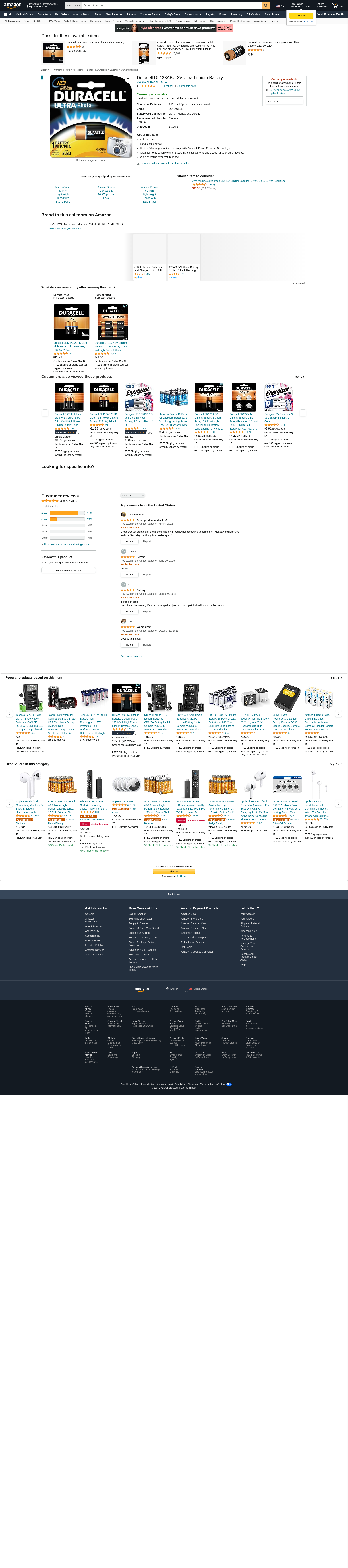 DURDL123ABPK Features: -Quantity : 1 Per pack. -Global Product Type: Batteries-Lithium. -Post-Consumer Recycled Content Percent : 0 %. -Material(s): Lithium Manganese Dioxide. -Battery Type: Lithium. -Pre-Consumer Recycled Content Percent : 0 %. Size: -123/3 Volt. Pack Size: -1 Per Pack. Product Type: -Alkaline/Lithium. Country of Manufacture: -United States. Dimensions: Overall Product Weight: -1 lbs.
