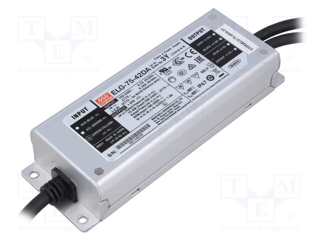 Mean Well Led Driver, Constant Current/volt, 75.6W Rohs Compliant: Yes - ELG-75-42DA-3Y