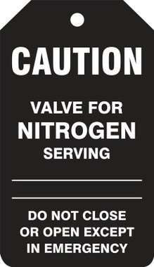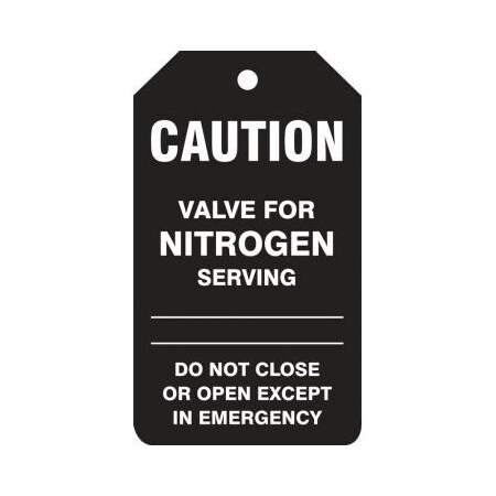Accuform TDM620PTP RP-Plastic Medical Gas Tag, Legend "Caution Valve for Nitrogen Serving Do Not", 5.75" Length x 3.25" Width x 0.015" Thickness, White on Black (Pack of 25)