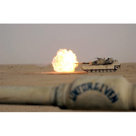 Marines fire their M1A1 Abrams tank main gun in the Iraqi desert Poster Print by Stocktrek Images (17 x 11)
