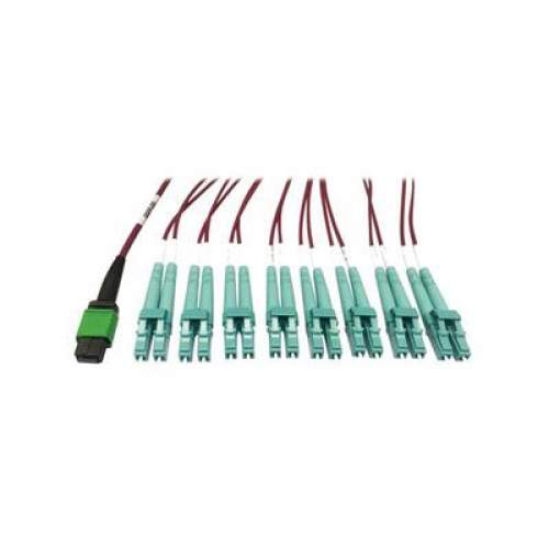 Tripp Lite N846D-01M-16EMG 400G Multimode 50/125 OM4 Plenum Fiber Optic Breakout Cable, 16F MTP/MPO-APC to (x4) LC Duplex (F/M), Magenta, 1 m | JensenTools