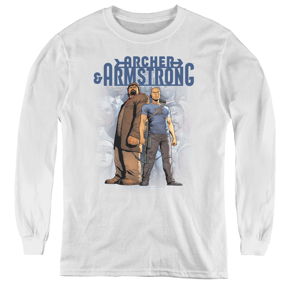 Trevco VAL208-YL-1 Archer & Armstrong & Two Against All Youth Long Sleeve T-Shirt, White - Small