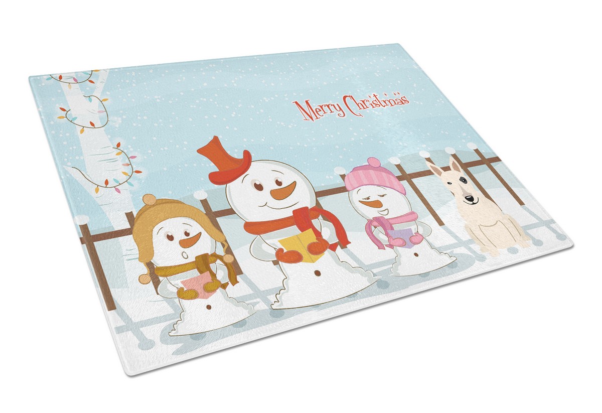 Carolines Treasures BB2469LCB Merry Christmas Carolers Bull Terrier White Glass Cutting Board, Large