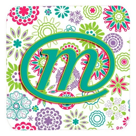 Caroline's Treasures Letter M Flowers Pink Teal Green Initial Foam Coasters (Set of 4), 3.5", Multicolor