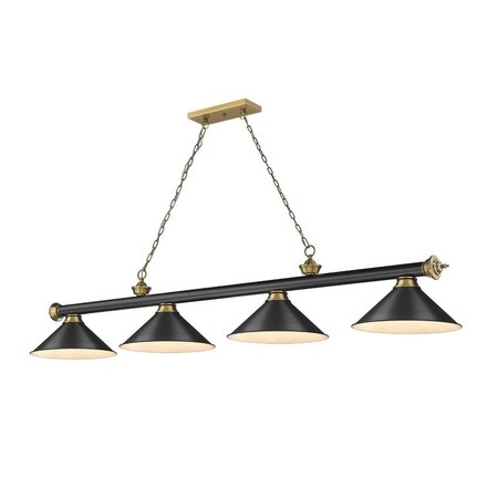 Z-Lite 2306-4MB-RB-MB15 Cordon Billiard Pendant, 4-Light 240 Total Watts, Matte Black & Rubbed Brass