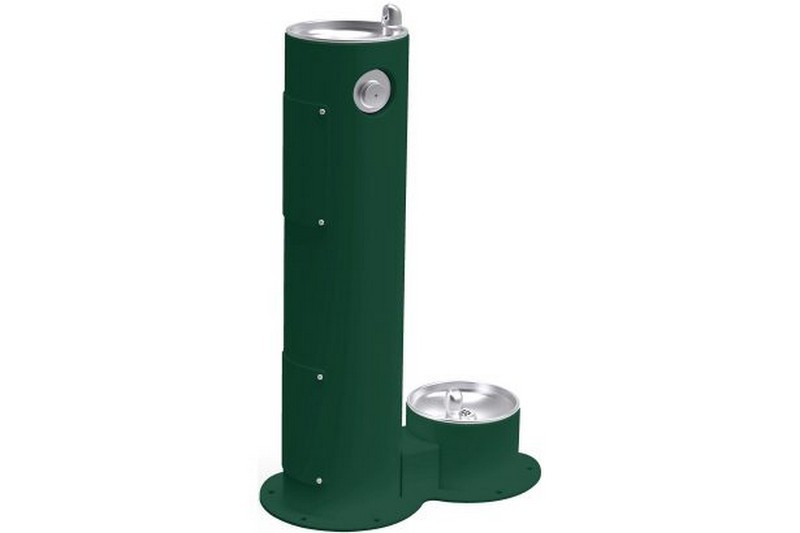 - Outdoor tubular pedestal fountain ideal for parks and recreational areas. Powder-coated exterior over a corrosion-resistant primary coating to provide protection from the elements.