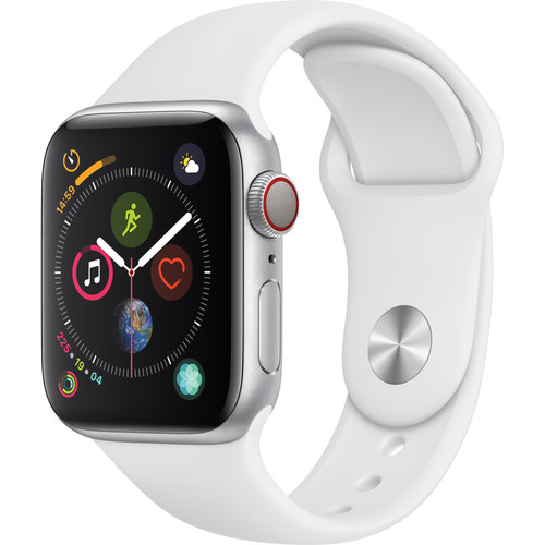 Apple Watch Series 4 (GPS + Cellular, 40MM) - Silver Aluminum Case with White Sport Band (Renewed)