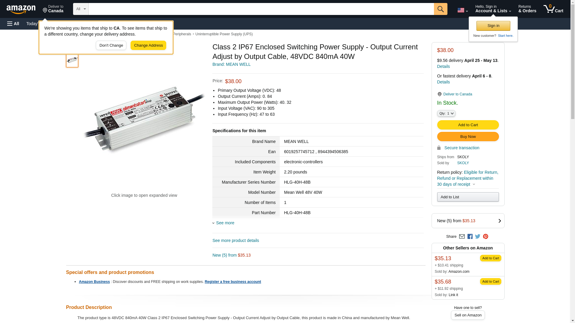 | electricautomationnetwork.com | HLG-40H-48B | 1 | 1 | 1 @ $41.39 | |