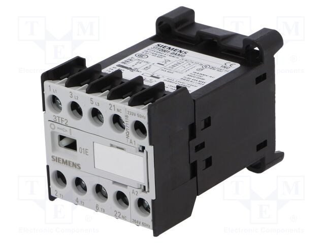 Siemens 3TF2001-0AM0 CONTACTOR, SIZE S00, 3 POLE AC-3 4KW/400V, AUXILIARY SWITCH 01E 1NC, 220VAC 50HZ/264VAC 60HZ | Kempston Controls