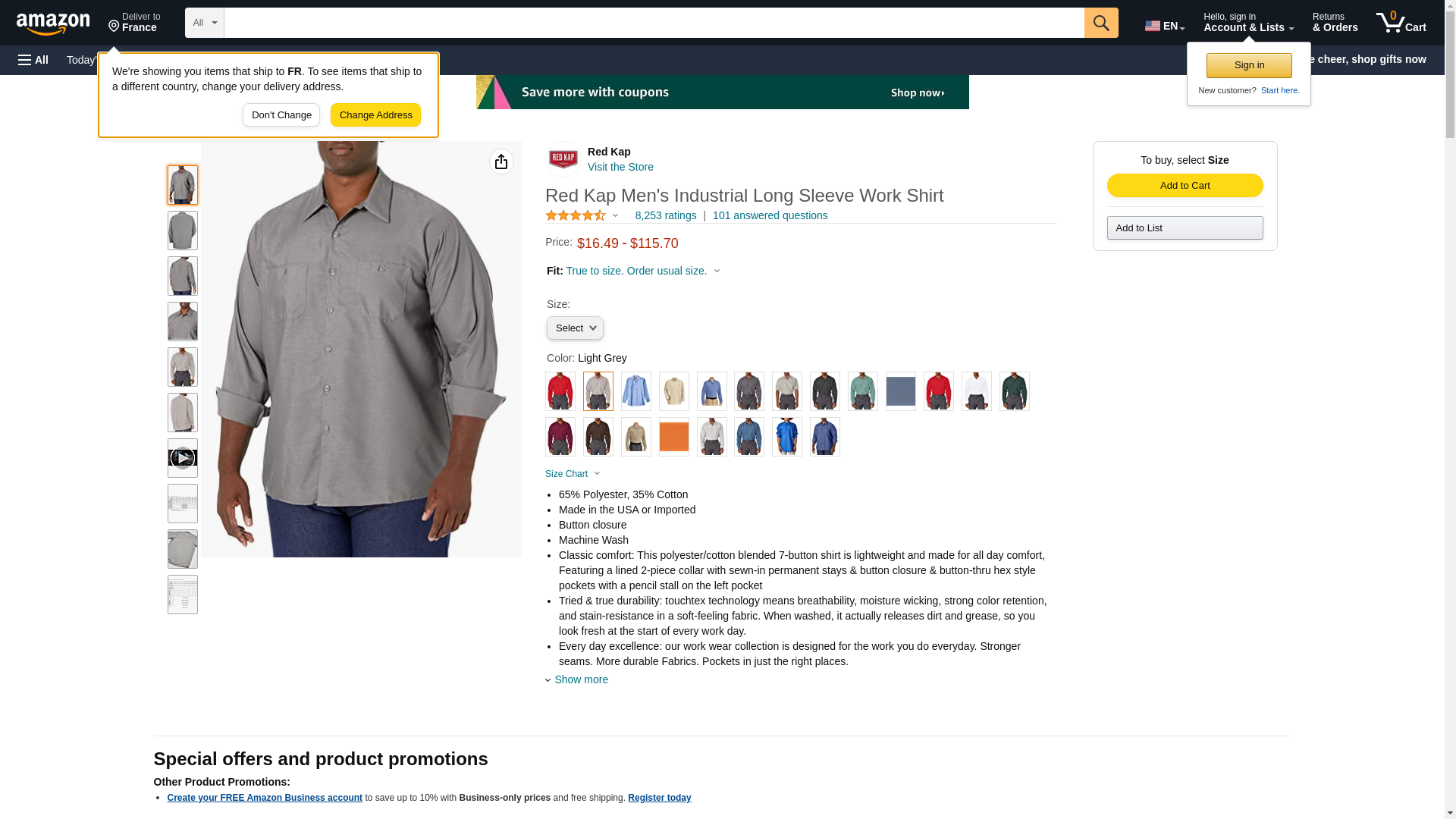 Red Kap Men's Industrial Work Shirt, Regular Fit, Long Sleeve, Light Grey, 4X-Large/Tall