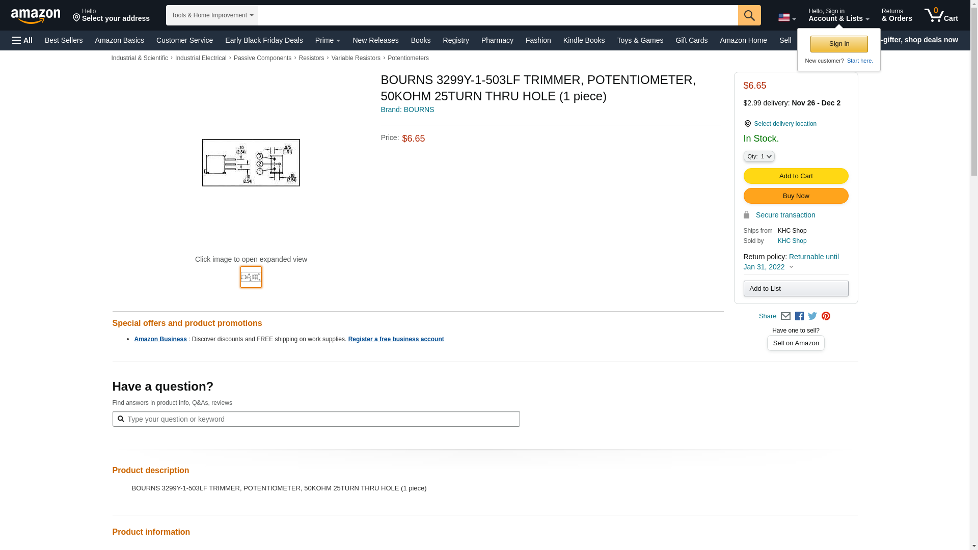 | 3299Y-1-503LF | 1 | 719 | 1 | 1 @ $2.08, 25 @ $1.92, 100 @ $1.51, 200 @ $1.41, 500 @ $1.36 | |